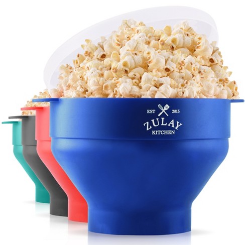 Zulay Kitchen Large Microwave Popcorn Maker Bpa Free Silicone Popcorn Popper Microwave Collapsible Bowl With Lid Family Size Iconic Blue Target